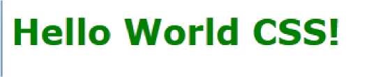 < h1 style="color:green; font- family:verdana">Hello World CSS!< /h1>