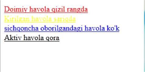 Havolalar(ccbMKa) bilan ishlash: LINK, ACTIVE, HOVER, VISITED