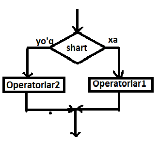 Agar shart bajarilsa Operatorlar1 bajariladi, aks holda Operatorlar2 bajariladi.