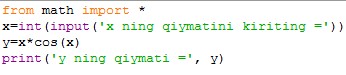 1 topshiriq. y=x*cosx funksiyaning qiymatini hisoblang