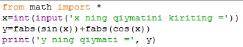 2 topshiriq. y=|sinx|+|cosx| funksiyaning qiymatini hisoblang