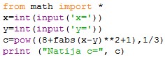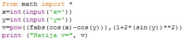 x=3 y=5 Natija c= 2.3513346877207573 |