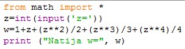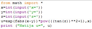 x=9 y=6 z=7 Natija u= 3244.984976821376 |