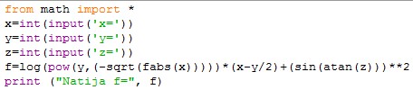 x=3 y=4 z=5 Natija f= -1.4395938061674258 |