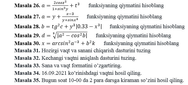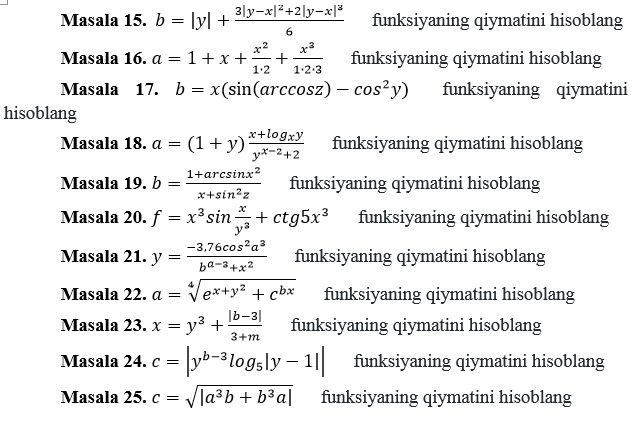 3 topshiriq. funksiyaning qiymatini hisoblang