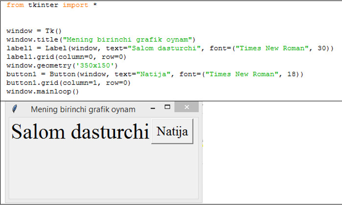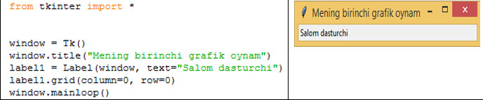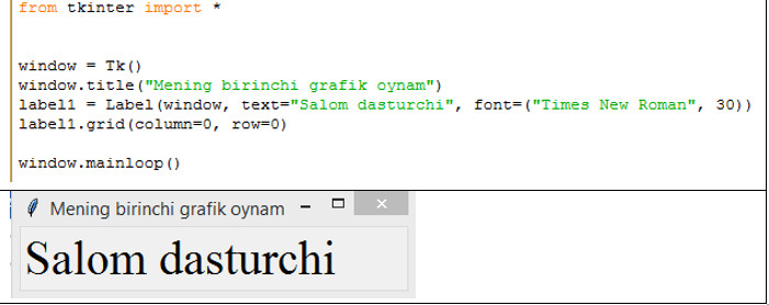 label1= Label(window, text="Salom dasturchi")