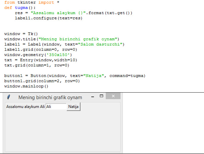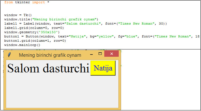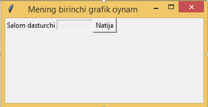 Bu ikkila yozgan kodimiz quyidagi oynani yaratadi: