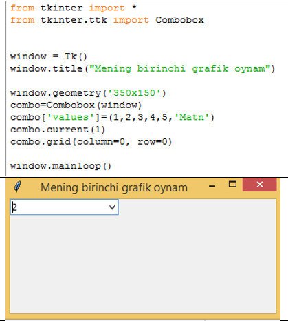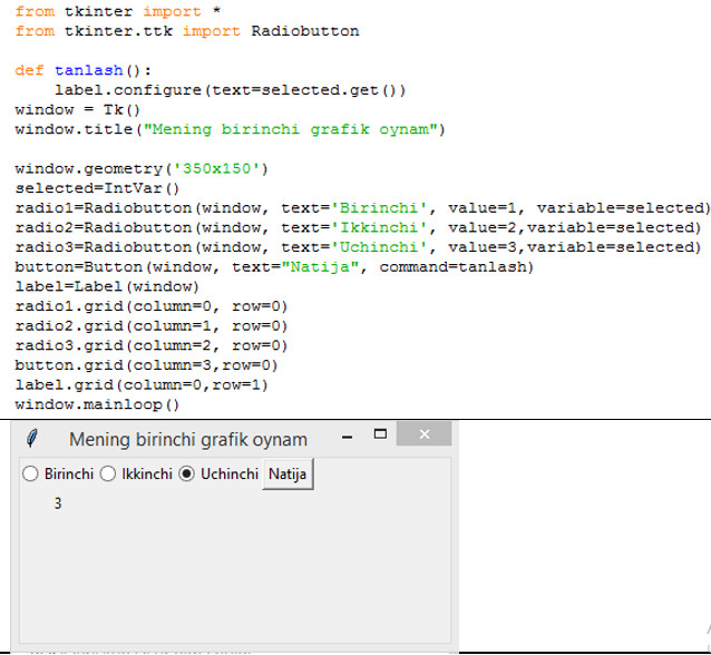 Tkinter – Pythondagi standart grafik kutubxona. Pythonni o‘rnatganda kutubxona