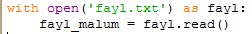 Fayli to'lqi o'qish uchun quyidagi kodni yozamiz: